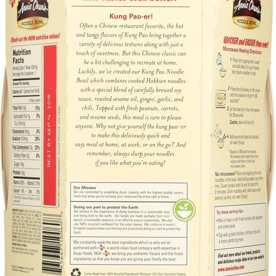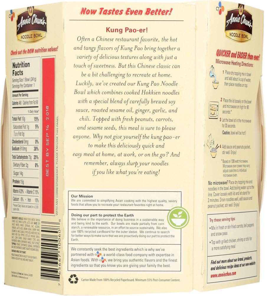 Discover the bold flavors of Annie Chun's Noodle Bowl Kung Pao. Featuring a pack of three 8.5 ounce bowls, this brand is known for its delicious Kung Pao flavor. Enjoy a convenient and tasty meal option without sacrificing authentic taste.