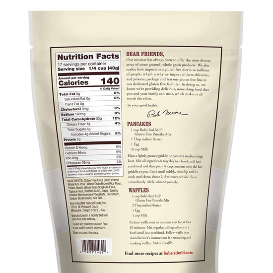 Indulge in delicious, gluten-free pancakes and waffles with Bob's Red Mill Pancake Mix. Made with a unique blend of stone ground sorghum and brown rice flour, this mix is not only dairy-free and low-fat, but also vegan. With a separate facility dedicated to gluten-free production, you can trust the wholesome goodness of Bob's Red Mill to deliver on taste and quality. Elevate your breakfast game with these light and fluffy flapjacks and crispy waffles - a true testament to the idea that gluten-free food can taste just as good.