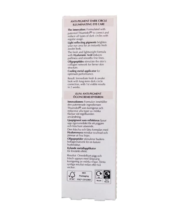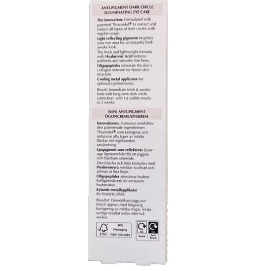 Eucerin ANTI-PIGMENT lightening eye contour is a powerful and scientifically-proven solution for reducing puffiness and brightening the delicate skin around the eyes. With a 15 ml volume and compact dimensions of 5.51 x 1.57 x 1.18 inches, this product is highly effective and easy to use.