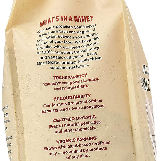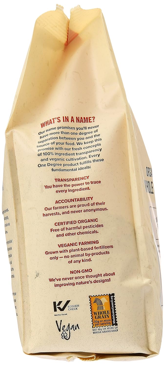 One Degree Organics Organic Sprouted Whole Wheat Flour is a 100% organic and non-GMO product from Canada. With natural, organic, and Kosher certifications, this flour is perfect for baking and cooking. Sprouted for increased nutrients and digestibility, it's a healthy and delicious choice for any recipe.