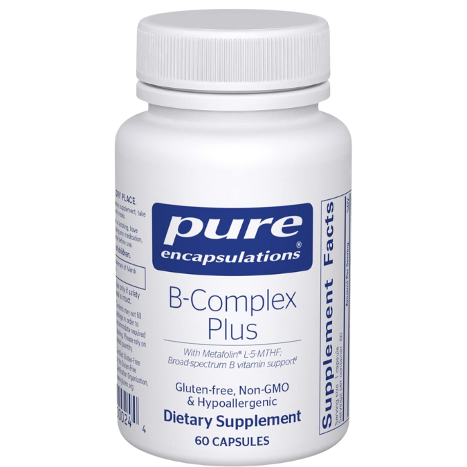 Boost your overall health with Pure Encapsulations B-Complex Plus. This gluten-free supplement provides nervous system and cognitive support, as well as cellular energy for both men and women. Formulated with Methylated Folate and vitamin B12, it also supports healthy cognitive function and metabolism. Pure, trusted quality.